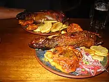 Uno de los pilares del ejército inca y la población en general era el pescado seco. Lapas, rayas, rayas, pequeños tiburones del género Mustelus, lisas y bonito se encontraban entre los peces capturados en la costa peruana. Se comieron otras criaturas marinas como aves marinas, pingüinos, leones marinos y delfines, así como varios crustáceos y quitones, mejillones, chanque (un animal parecido a un abulón). Al igual que otros pueblos estadounidenses, los incas comieron animales que a menudo fueron considerados bichos por muchos europeos, como ranas, orugas, escarabajos y hormigas. Las larvas de mosca de mayo se comían crudas o tostadas y molidas para hacer panes que luego podían almacenarse.[6]
