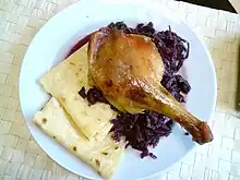 Otro plato representativo de la cocina eslovaca es el «guláš», comida hecha con carne de res y cebolla con muchos ingredientes al que pimiento molido y la mejorana le dan un olor muy especial y característico. Muchos tipos de platos fuertes se consumen acompañados de «knedľa» – una pasta hecho de harina de trigo y levadura.