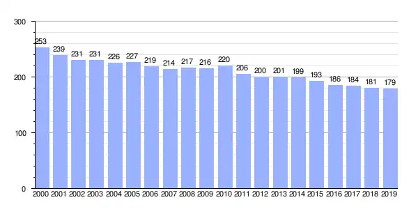 | Gráfica de evolución demográfica de Codesoso entre 2000 y 2019 |