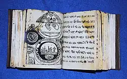 El códice tiene 448 páginas de 12x10 cm, teniendo alternativamente 9 y 14 filas de símbolos. Junto al texto hay 87 ilustraciones que incluyen escenas religiosas, laicas, y militares. Las ilustraciones indican un entorno en el que cristianos, paganos, y musulmanes coexisten; los símbolos de la cruz, la media luna, y el sol/esvástica son omnipresentes.