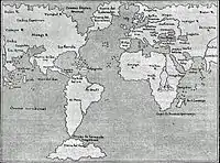 - Enrique de Gandía, historiador argentino, describe en su libro Primitivos navegantes vascos (Editorial Vasca Ekin. Buenos Aires, 1942) que la gran península del mapamundi de Martellus puede ser identificada por sus grandes dimensiones con la "gran masa sudamericana".