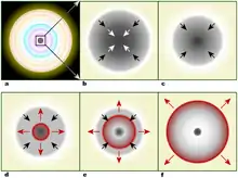 Este problema fue abordado por Oppenheimer y Snyder en un artículo clásico de 1939. Estos autores estudiaron el caso un tanto idealizado de una estrella esférica que no tiene momento angular. Se sabe que pequeñas desviaciones de estas condiciones tienen las mismas propiedades básicas, pero el colapso de distribuciones de masas no esféricas o con grandes momentos angulares es notablemente diferente. Una estrella esférica sin momento angular al colapsarse da lugar a un agujero negro de Schwarzschild, mientras que si el momento angular es importante se tiene un agujero negro de Kerr.