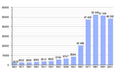 | Gráfica de evolución demográfica de Cologno Monzese entre 1861 y 2001 |