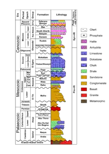 - Esta obra contiene una traducción derivada de «Stratigraphic column» de Wikipedia en inglés, concretamente de esta versión, publicada por sus editores bajo la Licencia de documentación libre de GNU y la Licencia Creative Commons Atribución-CompartirIgual 4.0 Internacional.