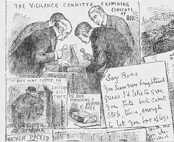 En especial se ensañaron con su Presidente, George Lusk. La más notoria de tales cartas arribó a su domicilio el 16 de octubre de 1888, y estaba encabezada con la sugestiva leyenda "Desde el infierno". Adjunta a la misiva iba una caja de cartón que guardaba un trozo de riñón humano embebido en glicerina.[8][9]