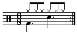 Este compás es típico en ritmos como giga doble, tarantela, barcarola, loure, marcha, polca paraguaya, galopa, guarania, zamba, cueca, marinera peruana, chacarera, segá, Salegy blues y slow rock 6/8 La mayoría de las marchas militares están en 6