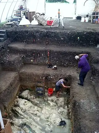 ![]() Excavación en el sitio Gault | ||