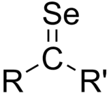 - Selonas (R2C=Se, llamadas a veces selenonas) son los análogos de selenio de las cetonas. Son raras, porque a su tendencia a la oligomerizarse.[13] La diselenobenzoquinona es estable como complejo metálico.[14] La selenourea es un ejemplo de un compuesto estable que contiene un enlace doble C=Se.