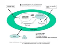 Todo ser humano posee un conjunto de ideas con el que se enfrenta a la tarea de entender el mundo.[1] En el proceso comunicativo, emisor y receptor tratan de crear un espacio común donde se encuentran las ideas de cambios.[1] Cuando ese espacio no es total, surgen problemas en la comunicación.[1] Pueden, por ejemplo, producirse malentendidos cuando un hablante piensa que su interlocutor es una persona con determinadas características que realmente no posee.[1]