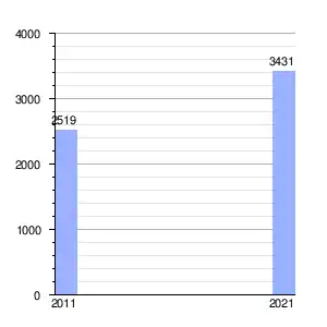 | Gráfica de evolución demográfica de Conceição e Cabanas de Tavira entre 2011 y 2021 |