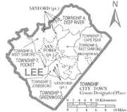 El condado se divide en siete municipios: Municipio de Greenwood, Municipio de Jonesboro, Municipio de Cape Fear, Municipio de Deep River, Municipio de East Sanford, Municipio de West Sanford, Municipio de Pocket.