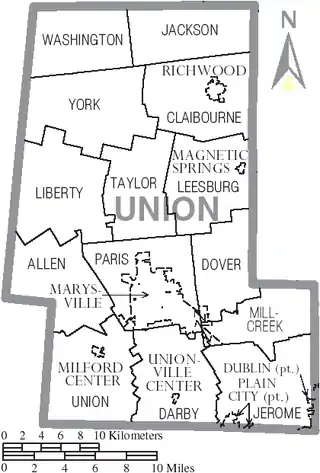 - Esta obra contiene una traducción derivada de «Union County, Ohio» de Wikipedia en inglés, publicada por sus editores bajo la Licencia de documentación libre de GNU y la Licencia Creative Commons Atribución-CompartirIgual 4.0 Internacional.