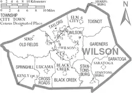 El condado se divide en diez municipios: Municipio de Black Creek, Municipio de Cross Roads, Municipio de Gardners, Municipio de Old Fields, Municipio de Saratoga, Municipio de Springhill, Municipio de Stantonsburg, Municipio de Taylors, Municipio de Toisnot y Municipio de Wilson.