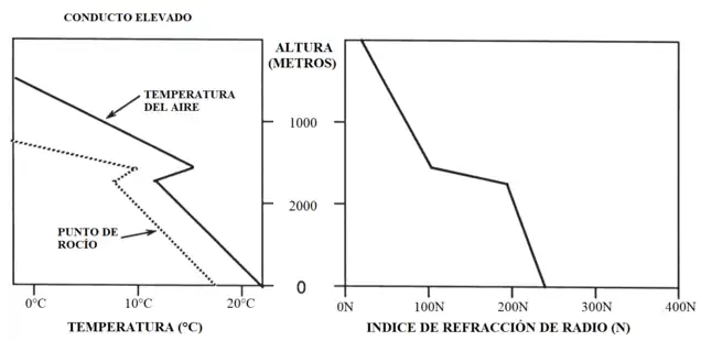 Estos conductos se crean a alturas en un rango entre 450 metros y 2000 metros y tienen el origen de las aberturas troposféricas por tierra más largas, esto significa que a distancias más largas se pueden trabajar por medio de los conductos elevados sobre el mar.