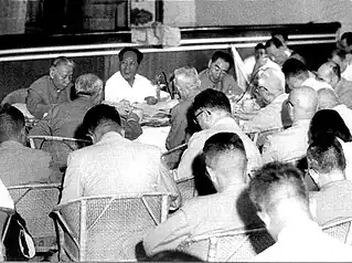 ![]() Al fondo Liu Shaoqi, Mao Zedong y Zhou Enlai en la conferencia | ||