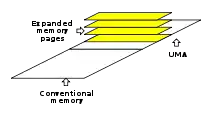 La computadora IBM PC fue lanzada en 1981. La IBM PC utilizó el microprocesador 8088 que tenía 20 líneas de direcciones y, por eso, podía direccionar directamente 220 posiciones (1 MiB) de memoria principal. En 1985 se creó la “especificación de memoria expandida” para definir la conmutación de bancos de memoria en la IBM PC. Como resultado la memoria de la IBC PC pudo ser expandida, no estando limitada a 1 MiB.[10]