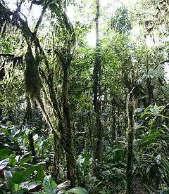 Se distribuye de forma fragmentada a lo largo de los Andes desde el noroeste de Venezuela, incluyendo la Serranía del Perijá, por Colombia, Ecuador, hasta el sureste de Perú.[5]