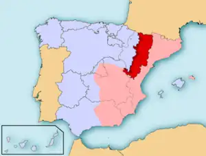 ![]() Territorio administrado por el CRDA (en rojo) dentro de la Segunda República Española (en rosa). | |||||||||||||||||||||||||||||||