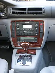 El término "consola central" a menudo también se extiende al reposabrazos situado entre los asientos del conductor y del pasajero, que en algunos vehículos (como el Toyota RAV4) cuenta con uno o más compartimentos de almacenamiento debajo del reposabrazos.[2]