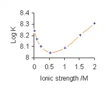 Cuando las constantes publicadas se refieren a una fuerza iónica diferente a la requerida para una aplicación particular, pueden ajustarse por medio de la teoría de los iones específicos (SIT) y otras teorías.[17]