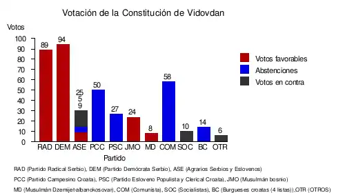La Constitución de Vidovdan fue la primera constitución del Reino de los Serbios, Croatas y Eslovenos. Se aprobó por la asamblea constituyente, que se había elegido para su redacción el 28 de noviembre de 1920, el día de San Vito según el calendario gregoriano (28 de julio de 1921), fiesta religiosa de gran relevancia en Serbia. La constitución se aprobó por mayoría simple, con 223 votos a favor, 35 en contra y 161 abstenciones.[1]
