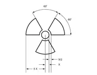El símbolo utilizado en, radiaciones es el trébol de tres hojas, en color negro y de dimensiones bien definidas.[3]