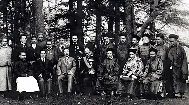 Las fuerzas británicas dirigidas por Sir Francis Younghusband entraron en el Tíbet en 1904 e hicieron un tratado con los tibetanos.[9] En 1906, el gobierno británico buscó la aceptación china de la soberanía sobre el Tíbet como parte de la Convención anglo-china sobre el Tíbet, pero fue rechazado por el enviado chino, que insistió en la soberanía.[10] En 1907, Gran Bretaña y Rusia reconocieron la "soberanía" china sobre el Tíbet.[11]