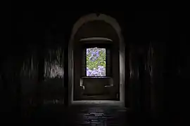 Por otra parte en el segundo nivel de la fachada, sobre el muro se abren espacio para ventanas con arcos conopiales, estando rematada la fachada por almenas que le dan aspecto de fortaleza. Asimismo las fachadas laterales y posterior del inmueble que miran a los jardines en general presentan de igual manera ventanas con arcos conopiales y están rematadas por almenas, en algunas partes presentan arcos de contrafuertes, así como modestos pórticos de arquería que fueron colocados en etapa posterior a la construcción original.