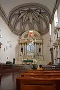 El templo está conformado por una sola nave con bóveda de cañón y en su parte posterior su ábside es de forma semicircular.