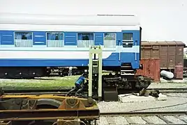 ![]() Cambio de bogies en Brest (Bielorrusia), en la frontera con Polonia |