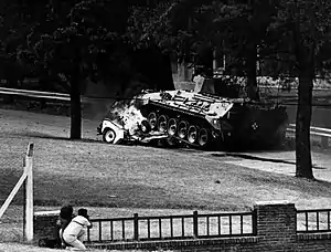 Osvaldo Bayer afirmó que el general Arrillaga «llegó de inmediato con sus tanques y ametralladoras y granadas de napalm».[82] Un tanque chocó la pared trasera, abrió un enorme hueco por el que ingresaron los comandos. Se produjeron intensos tiroteos mientras el edificio se incendiaba y derrumbaba.