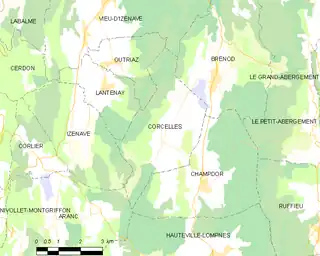 Corcelles era una comuna francesa situada en el departamento de Ain, de la región de Auvernia-Ródano-Alpes, que el 1 de enero de 2016 pasó a ser una comuna delegada de la comuna nueva de Champdor-Corcelles[3] al fusionarse con la comuna de Champdor.