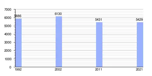 Hasta 2021 la población era de 5429 habitantes,[1] con una densidad de población de 72,08 habitantes por kilómetro cuadrado.[1]