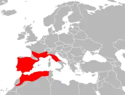Se encuentra en España, Portugal, el sur de Francia, Italia, Marruecos, Argelia y Túnez. El nombre dado a la especie es por la región de Gironda (Francia).