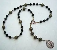 - Rosario brigidino, compuesto por seis décadas de diez cuentas cada una. Hay tres cuentas adicionales al final.
