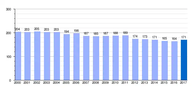 En 2017 contaba con una población de 171 habitantes, de los cuales 81 eran varones y 90 mujeres (INE 2017).