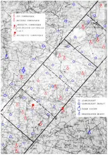 La Línea Kammhuber consistía en tres franjas paralelas divididas en zonas de aproximadamente 32 km de largo (norte-sur) por 20 km de ancho (este-oeste). En cada zona (Himmelbett) había dos cazas nocturnos alemanes, que eran dirigidos desde tierra por su propio controlador hacia sus objetivos. Si bien cada centro de control solo podía manejar dos cazas simultáneamente, esto era suficiente para enfrentarse con la táctica inicial del Comando de Bombarderos de la RAF, que enviaba sus bombarderos nocturnos individualmente, trazando cada uno su propia ruta hacia el objetivo para evitar las concentraciones del fuego antiaéreo.