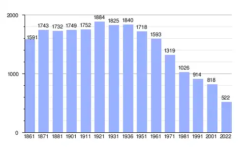 | Gráfica de evolución demográfica de Corte Brugnatella entre 1861 y 2022 |