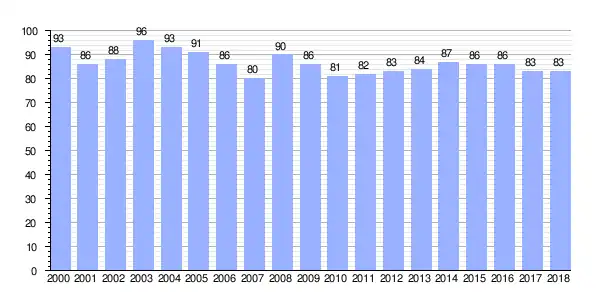 | Gráfica de evolución demográfica de Cortegada entre 2000 y 2018 |