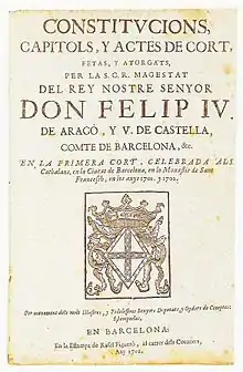 - Albareda i Salvadó, Joaquim (2007). «La Represa del constitucionalisme (1701-1706)». Revista de Dret Històric Català (7): 116. ISSN 1578-5300. doi:10.2436/20.3004.01.19.