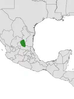 Endémica del estado de San Luis Potosí en México, en elevaciones de 1200 a 1900 m s. n. m.[1]