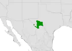 Endémica de Chihuahua, Coahuila en México y Texas en Estados Unidos, en elevaciones de 300 a 1500 m s. n. m. Habita en planicies aluviales, pastizales y matorrales xerófilos sobre suelos calizos junto a arbustos de la especie Larrea tridentata.[3][1]