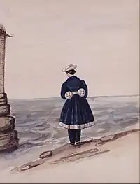 Con la técnica de acuarela pintada sobre papel en 1850, la obra de Francisco Fierro representa a una dama bañándose en Chorrillos, balneario al sur de Lima. Sus obras retratan las costumbre de la Lima antigua y representan de gran valor documental como testimonio de las tradiciones locales.[41]