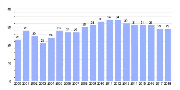 | Gráfica de evolución demográfica de Coto entre 2000 y 2018 |