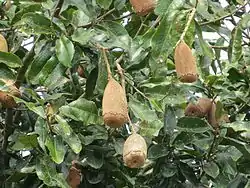 Tiene hojas perennes, alternas, simples, elípticas de 15 cm de longitud con los márgenes serrados, las líneas paralelas de nervios son a menudo visibles, como una no usual característica. El fruto es de 6-15 cm de longitud, cónico y rugoso. Una cosecha central sale cuando madura con semillas aladas que son dispersadas por el viento.