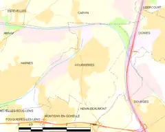 Courrières es una población y comuna francesa, situada en la región de Norte-Paso de Calais, departamento de Paso de Calais, en el distrito de Lens y cantón de Courrières.