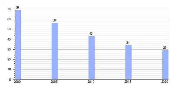 | Gráfica de evolución demográfica de Cova entre 2000 y 2020 |