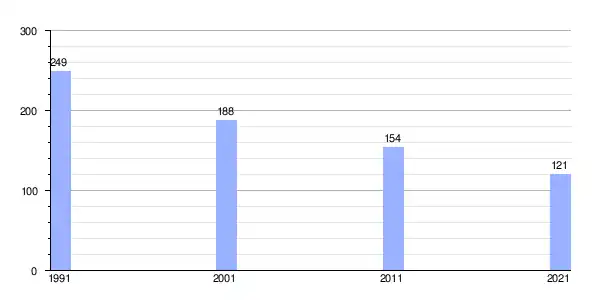 | Gráfica de evolución demográfica de Cozuelos de Fuentidueña[13] entre 1991 y 2021 |