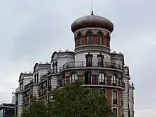 - El edificio Críspulo Moro, situado en la esquina entre las calles Alfonso XII y Doctor Velasco, junto a los Jardines del Retiro de Madrid. Es un edificio de viviendas con una fachada curvada y un torreón con 8 ventanas rematado por una cúpula bulbosa, que le confiere un extravagante aspecto similar a un palacio oriental. Durante un tiempo el torreón albergó el estudio del pintor Agustín Hernández. La cúpula colapsó la madrugada del 23 de mayo de 2020[9][10][11]