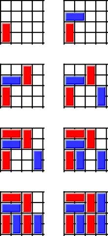 En el caso de un tablero de par × impar, el primer jugador gana también por jugada simétrica. El primer jugador pone el primer dominó en las dos casillas centrales del tablero. El segundo jugador puede hacer cualquiera jugada que desea, pero el primer jugador puede responder con una jugada de manera simétrica. Esto asegura la victoria para el primer jugador.